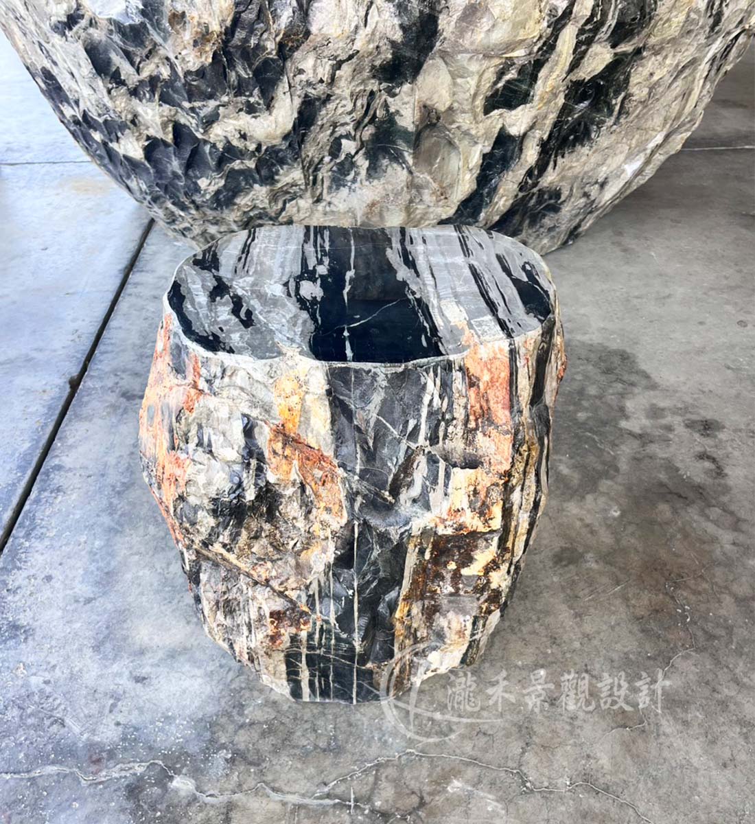 側邊保留原始岩層的粗獷質感,呈現原始與現代的對比美學